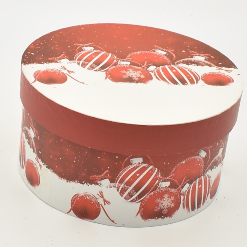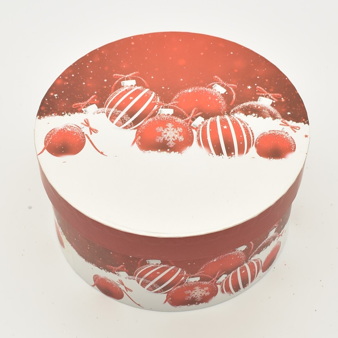 Χριστουγεννιάτικο στρόγγυλο κουτί λευκό κόκκινο με κόκκινες μπάλες