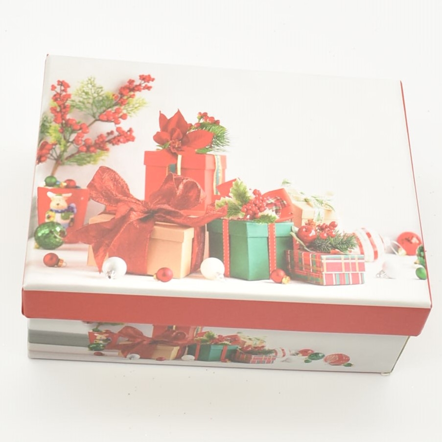 Χριστουγεννιάτικο λευκό κουτί με κόκκινα και πράσινα δώρα