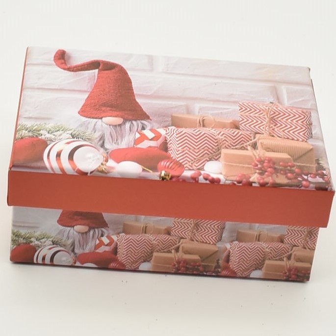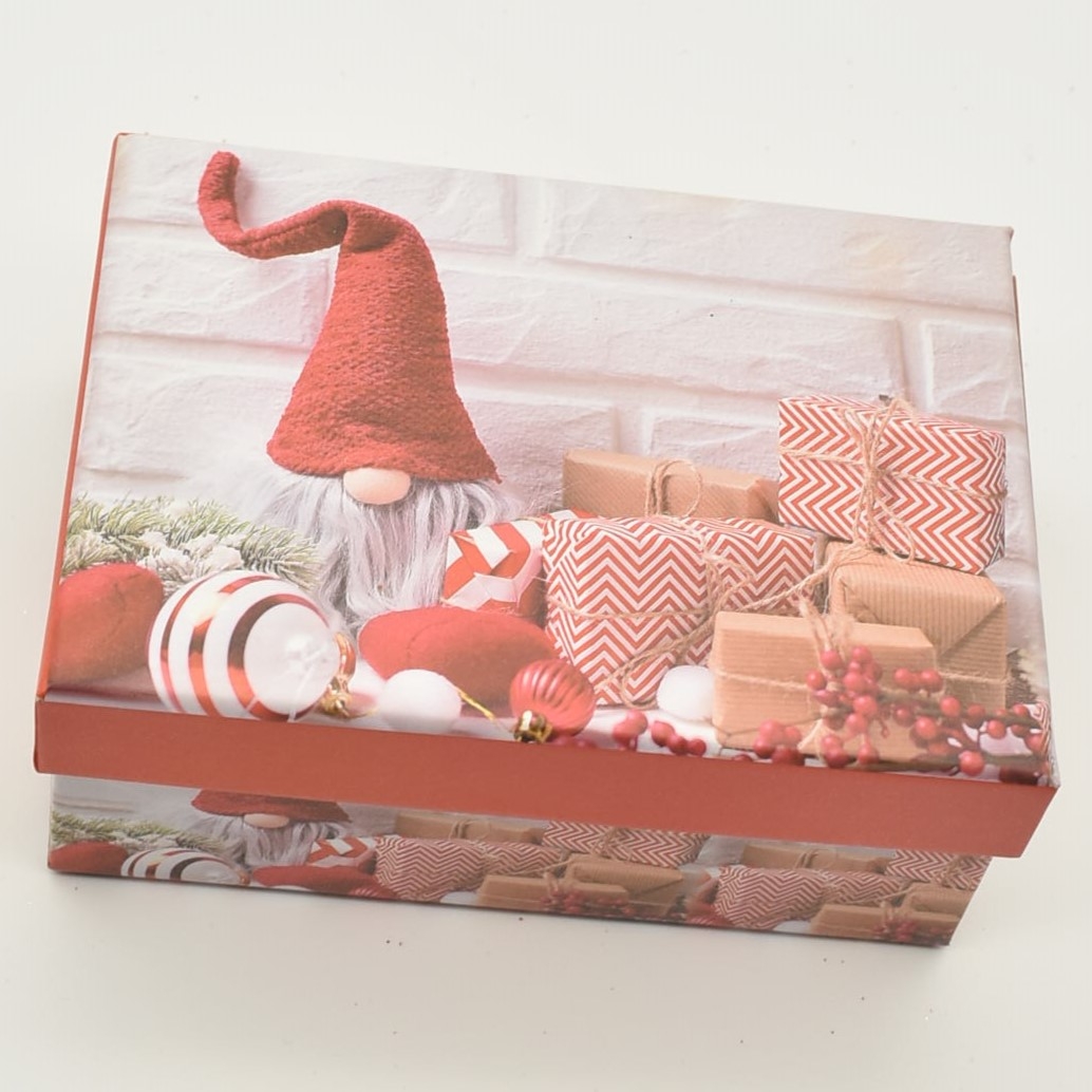 Χριστουγεννιάτικο κουτί κόκκινο άσπρο με νάνο και δώρα