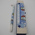Πασχαλινή γαλάζια λαμπάδα με σχέδιο καραβάκια και μεταλλικό τιμόνι, περιέχει κουτί