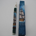 Πασχαλινή πλακέ λαμπάδα σε χρώμα άσπρο βεραμαν και εικονιζόμενο πλοίο ( περιέχει κουτί)