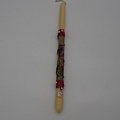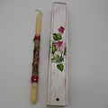 Χειροποίητη πασχαλινή μπεζ λαμπάδα με λουλούδια και κολιέ λουλουδάκι σε ξύλινο κουτί