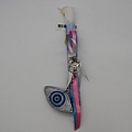 Χειροποίητη στρογγυλή άσπρη λαμπάδα μπλε πινελιές και μπρελόκ μάτι καλυμμένο με στρας