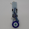 Χειροποίητη πλακέ γαλάζια λαμπάδα με μπρελόκ μάτι καλυμμένο σε στρας