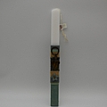 Πασχαλινή πλακέ λαμπάδα μισή άσπρη μοσή βεραμάν με μπρονζέ μπρελόκ καρδιάς