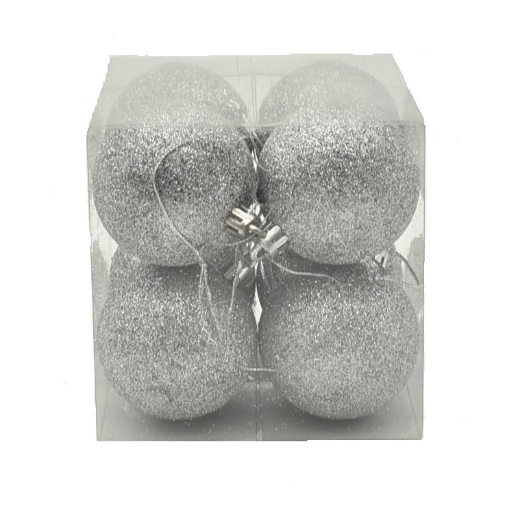 Χριστουγεννιάτικες ασημί με glitter μπάλες πλαστικές 8τμχ