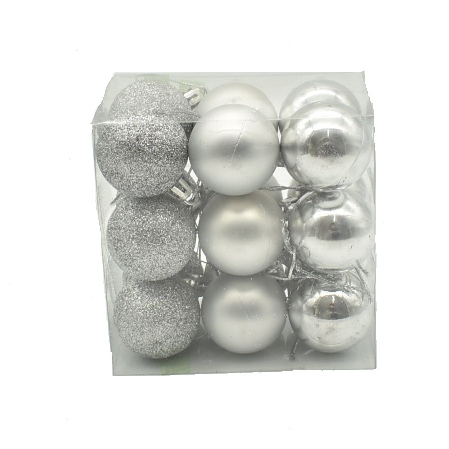 Χριστουγεννιάτικες ασημί μπάλες 3 σχέδια πλαστικές 18τμχ
