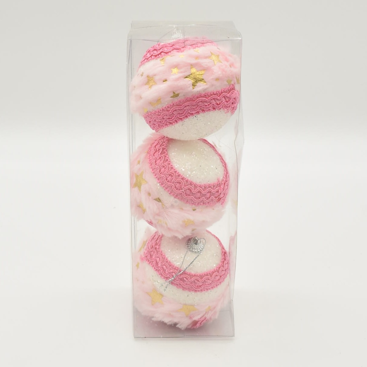 Χριστουγεννιάτικες ροζ γούνινες μπάλες 3τμχ