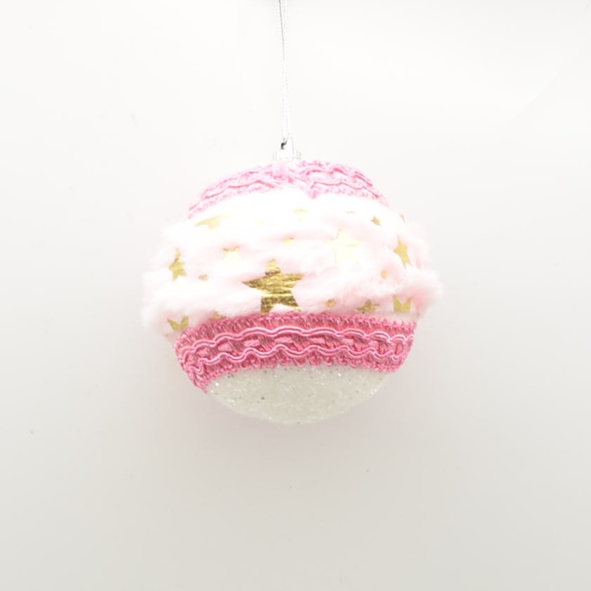 Κρεμαστό στολίδι με τελείωμα γλυφιτζούρι χρώμα ροζ με άσπρο