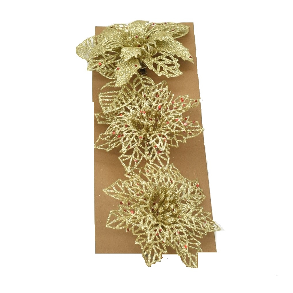 Διακοσμητικό πικ χρώμα χρυσό glitter σχέδιο λουλούδια 3τμχ