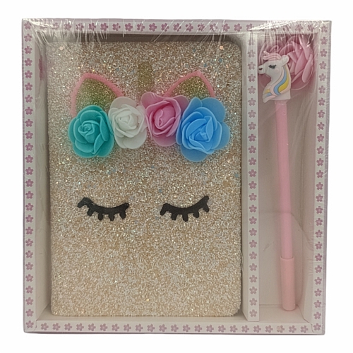 Σημειωματάριο μονόκερος με χρυσόσκονη και στυλό