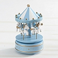 Ξύλινο μουσικό καρουζέλ σιέλ-λευκό με αλογάκια
