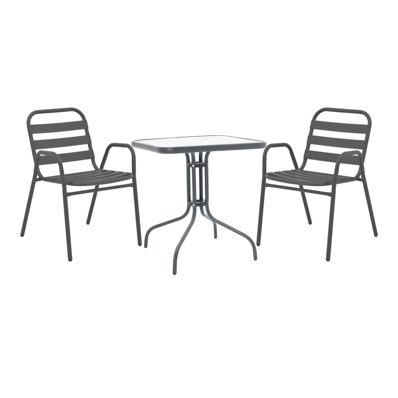 Τραπεζαρία Watson-Sussie pakoworld 3τεμ μέταλλο ανθρακί-γυαλί 70x70x70εκ