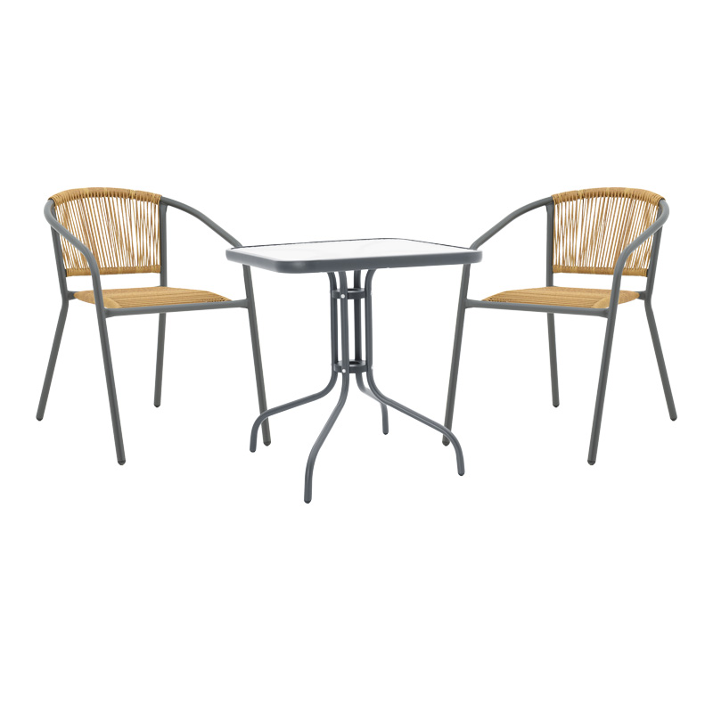 Τραπεζαρία Watson-Lindaria pakoworld 3τεμ μέταλλο ανθρακί-γυαλί και pe rattan σε φυσική απόχρωση 70x70x70εκ