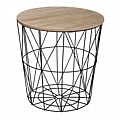 Βοηθητικό τραπέζι Kumi pakoworld mdf επιφάνεια oak και μέταλλο σε μαύρη απόχρωση Φ40x41εκ