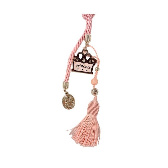 Γούρι παιδικό ροζ φυλαχτό με την παναγία από ατσάλι