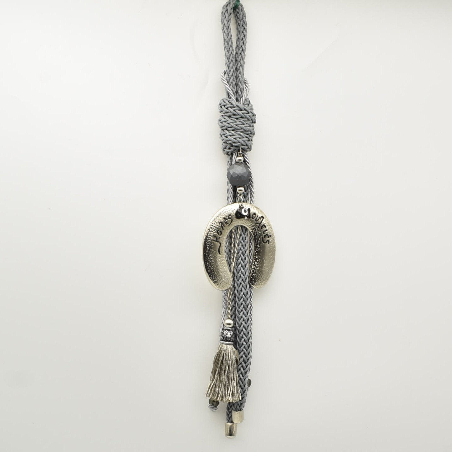 Κρεμαστό γούρι μάτι κορδόνι ασημί-γκρι