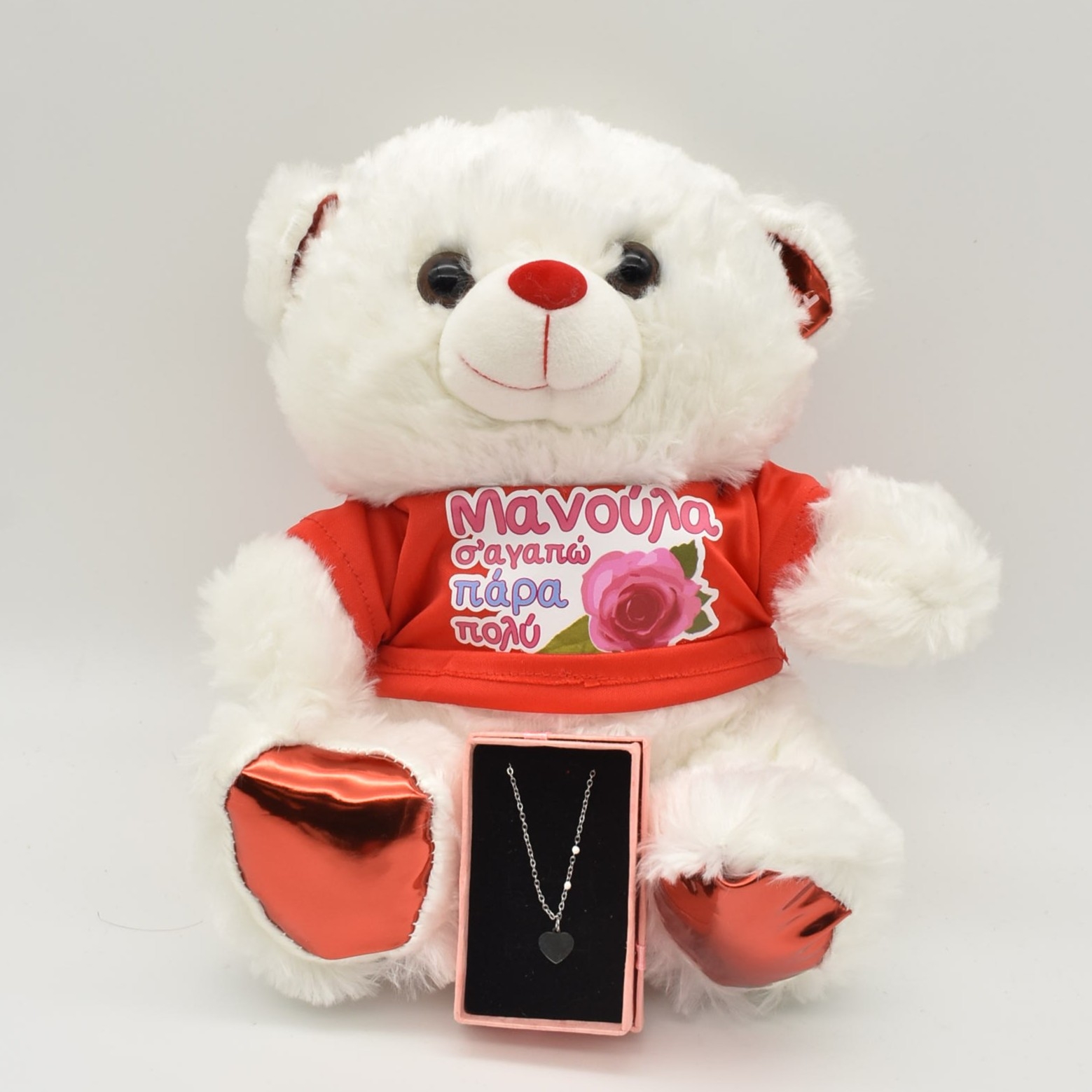 Αρκουδάκι για την μητέρα με ατσάλινο κολιέ καρδιά