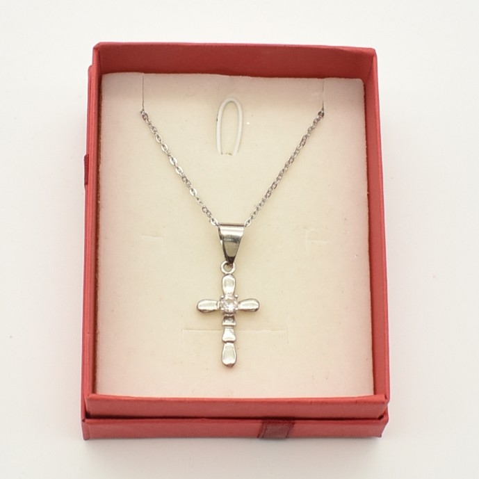 Γυναικείος σταυρός από ατσάλι με αλυσίδα .
