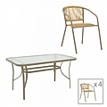 Τραπεζαρία Lindaria-Ensure pakoworld 5τεμ μέταλλο-γυαλί σε σαμπανιζέ απόχρωση 140x80x70εκ
