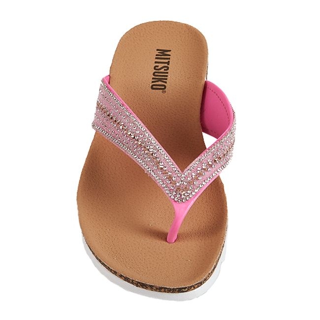 Γυναικεία σαγιονάρα δίχαλη soft με στρας-Ροζ