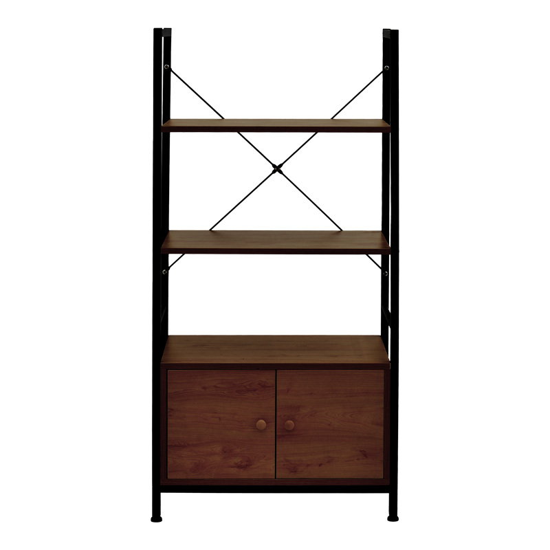 Ραφιέρα επιδαπέδια με ντουλάπι Kuili pakoworld μέταλλο μαύρο-mdf σε καρυδί απόχρωση 60x36x121εκ