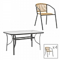 Τραπεζαρία Ensure-Lindaria pakoworld σετ 5τεμ μέταλλο σε ανθρακί και pe rattan σε φυσική απόχρωση 120x70x70εκ