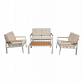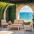 Σαλόνι κήπου Fashionable pakoworld σετ 4τμχ ύφασμα μπεζ-λευκό αλουμίνιο-plywood σε φυσική απόχρωση
