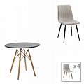 Τραπεζαρία Julita-Noor pakoworld σετ 5τεμ MDF μαύρο-γκρι-πόδια φυσικό Φ80x73εκ