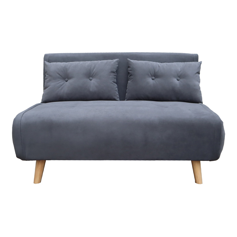 Καναπές-κρεβάτι Josuane pakoworld διθέσιος ανθρακί βελούδο και ξύλινο πόδι σε φυσική απόχρωση 122x80x81εκ