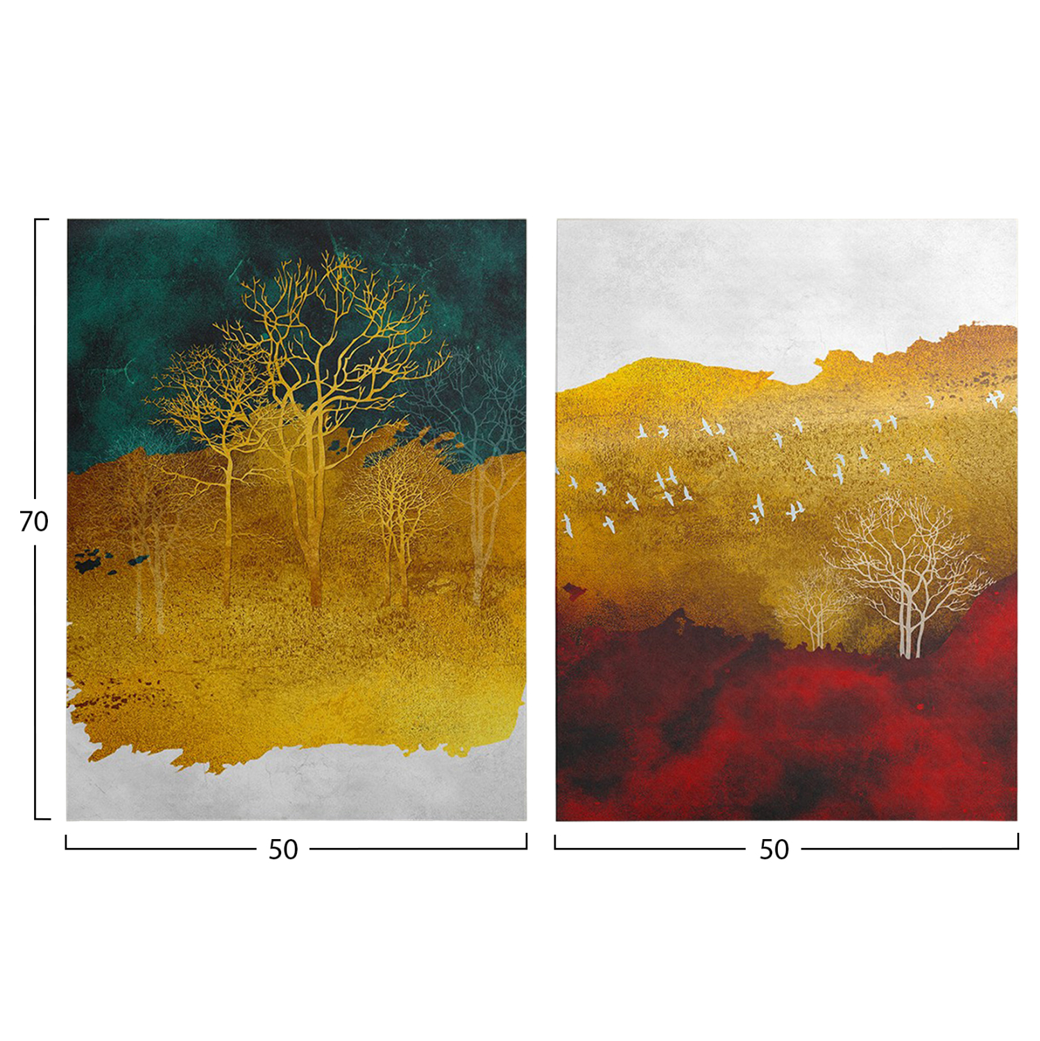 Οι πίνακες τοίχου μεταμορφώνουν τον τρόπο που αντιλαμβανόμαστε έναν χώρο. Διακοσμήστε, λοιπόν, τον χώρο σας με την καινούργια σειρά πινάκων τοίχου! Αυτοί οι πολύχρωμοι πίνακες (2τμχ) απεικονίζουν δύο διαφορετικά τοπία εξοχής, και έχουν υλοποιηθεί σε εκτυπωμένο καμβά σε ξύλινο πλαίσιο, και μπορείτε να τους τοποθετήσετε είτε μαζί, είτε σε διαφορετικά σημεία τον καθένα!