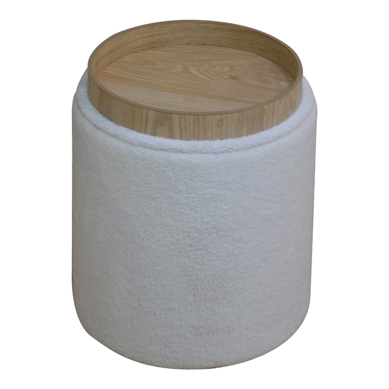Σκαμπό-μπαούλο Batur pakoworld μπουκλέ ύφασμα σε λευκή απόχρωση Φ34x38εκ