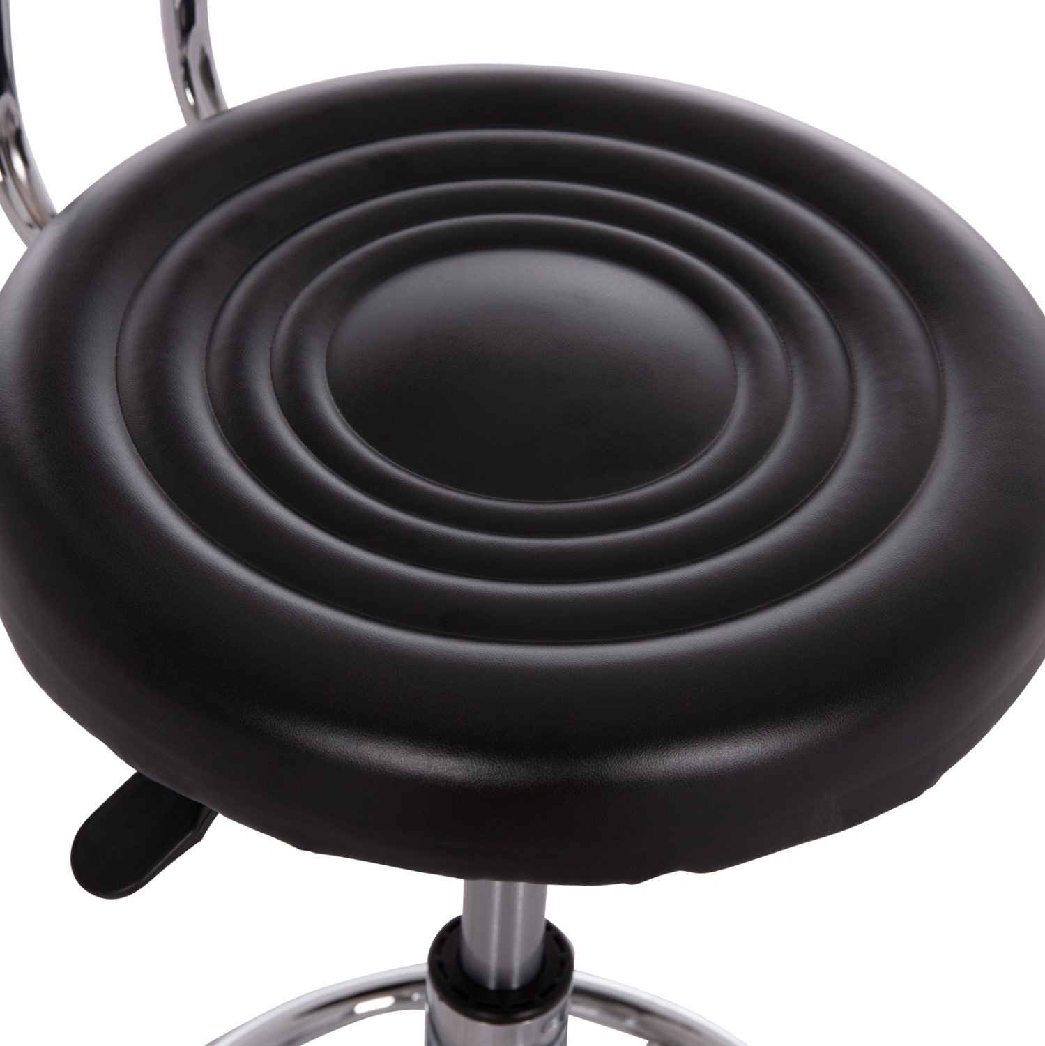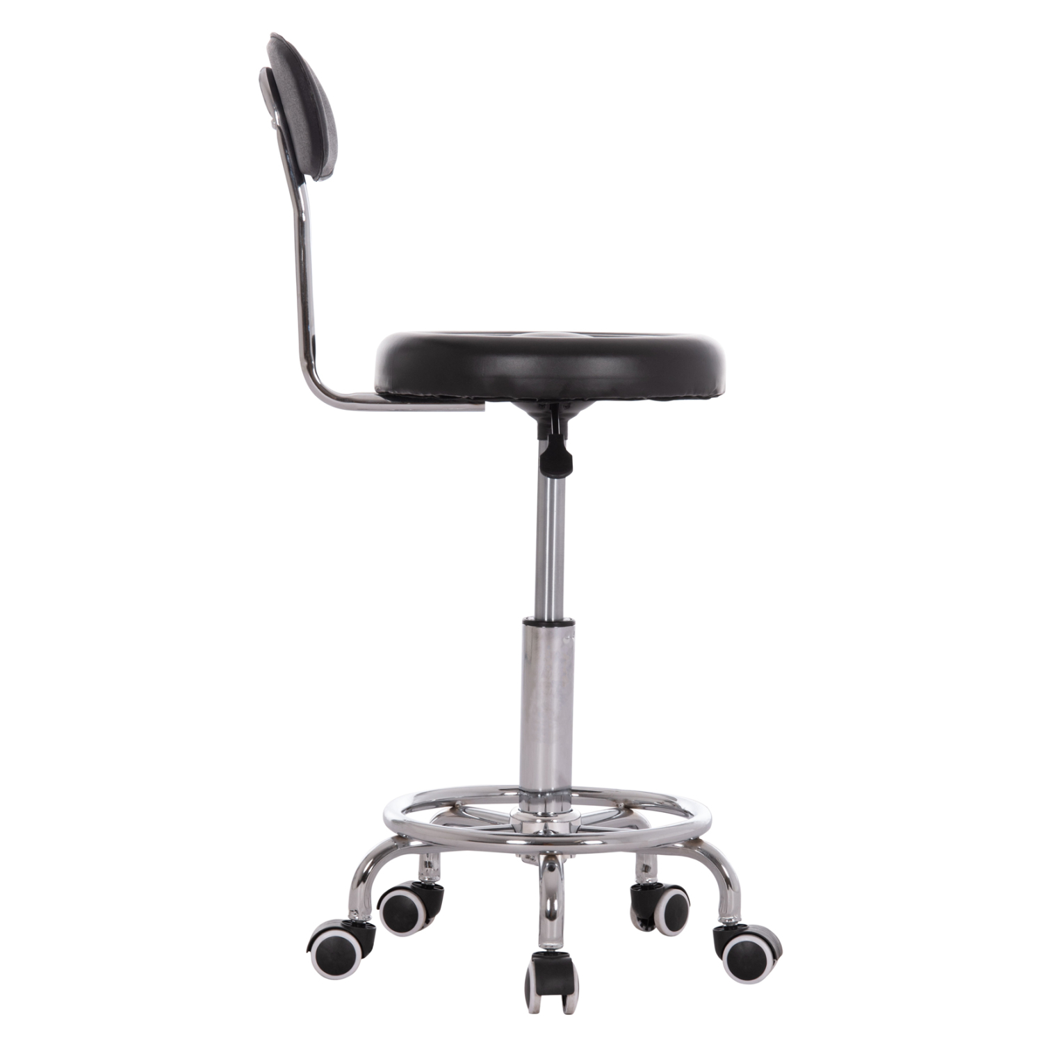 Το FB9211.21 είναι ένα ολοκληρωμένο σκαμπό γραφείου με βολικές και συμπαγείς διαστάσεις, με χρωμιωμένη μεταλλική και έντονα κυρτή βάση «αστέρι» και ροδάκια πολυπροπυλενίου. Το στρογγυλό κάθισμα επενδυμένο με ΜΑΥΡΟ PU δέρμα είναι ικανοποιητικό σε μέγεθος, ενώ το αμορτισέρ δίνει την δυνατότητα ρύθμισης ύψους μέσω ενός εύχρηστου μοχλού κάτω από το κάθισμα. Η πλάτη είναι και αυτή κυρτή προσφέροντας στιγμές ανακούφισης, ενώ στο χρωμιωμένο «πόδι» υπάρχει ένα κυκλικό υποπόδιο έτσι ώστε να υπάρχει συνέχεια κατά την περιστροφή του καθίσματος, ξεκουράζοντας τον χρήστη.