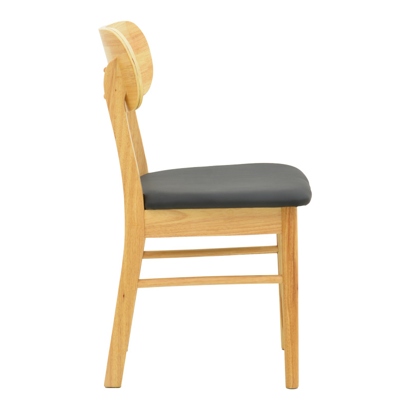 Καρέκλα Bedona pakoworld rubberwood σε φυσική απόχρωση με μαύρο pu μαξιλάρι 47x46x80εκ