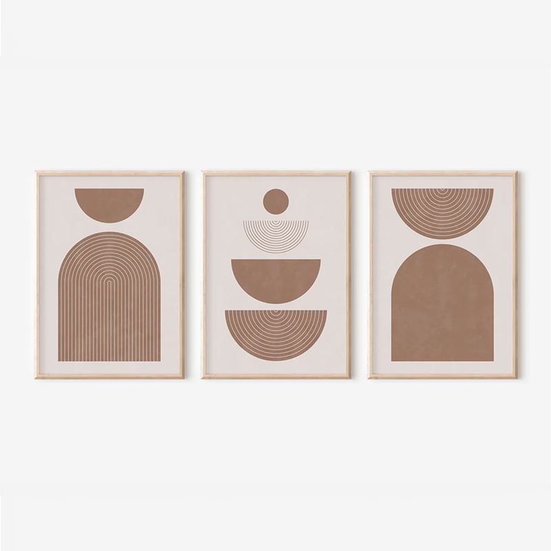 Αναβαθμίστε τον χώρο σας με την ήρεμη, γεωμετρική κομψότητα: το Τρίπτυχο Loana είναι το ιδανικό στοιχείο για να προσδώσετε έναν minimalist, αρχιτεκτονικό χαρακτήρα στους τοίχους σας. Αυτή η σύνθεση τριών τεμαχίων, ενισχυμένη από ψηφιακές εκτυπώσεις υψηλής ανάλυσης, διαθέτει αφηρημένα μοτίβα με μεγάλες καμπύλες σε μία απαλή παλέτα από nude και μπεζ αποχρώσεις. Μέσα από την αρμονική τους διάταξη, δημιουργούν έναν διακριτικό, ισορροπημένο οπτικό ρυθμό και μία έντονη αισθητική δήλωση.