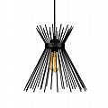 Με τον δυναμικό και γεωμετρικό του σχεδιασμό, αυτό το φωτιστικό αποτελεί ένα πραγματικό έργο τέχνης που θα τραβήξει όλα τα βλέμματα. Λεπτές, μαύρες μεταλλικές ράβδοι εκτείνονται ακτινωτά από έναν κεντρικό δακτύλιο, δημιουργώντας μια εντυπωσιακή σιλουέτα που θυμίζει αστεροειδή ή μοντέρνο γλυπτό.
