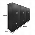 - Περιλαμβάνει εξι πόρτες, εσωτερικά φέρει ράγα για κρεμάστρες ενώ κάτω φέρει εξι μεγάλα συρτάρια για την αποθήκευση ρούχων και αξεσουάρ.