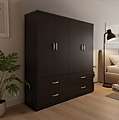 - Περιλαμβάνει τέσσερις πόρτες, εσωτερικά φέρει ράγα για κρεμάστρες ενώ κάτω φέρει τέσσερα μεγάλα συρτάρια για την αποθήκευση ρούχων και αξεσουάρ.
