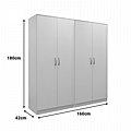 - Περιλαμβάνει τεσσερις πόρτες, εσωτερικά φέρει ράγα για κρεμάστρες και ράφια για την αποθήκευση ρούχων και αξεσουάρ.