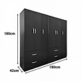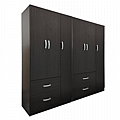 - Περιλαμβάνει εξι πόρτες, εσωτερικά φέρει ράγα για κρεμάστρες και ράφια ενώ κάτω φέρει τεσσερα μεγάλα συρτάρια για την αποθήκευση ρούχων και αξεσουάρ.