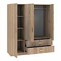 Ντουλάπα τρίφυλλη Royal pakoworld με συρτάρια sonoma 150x58x177εκ