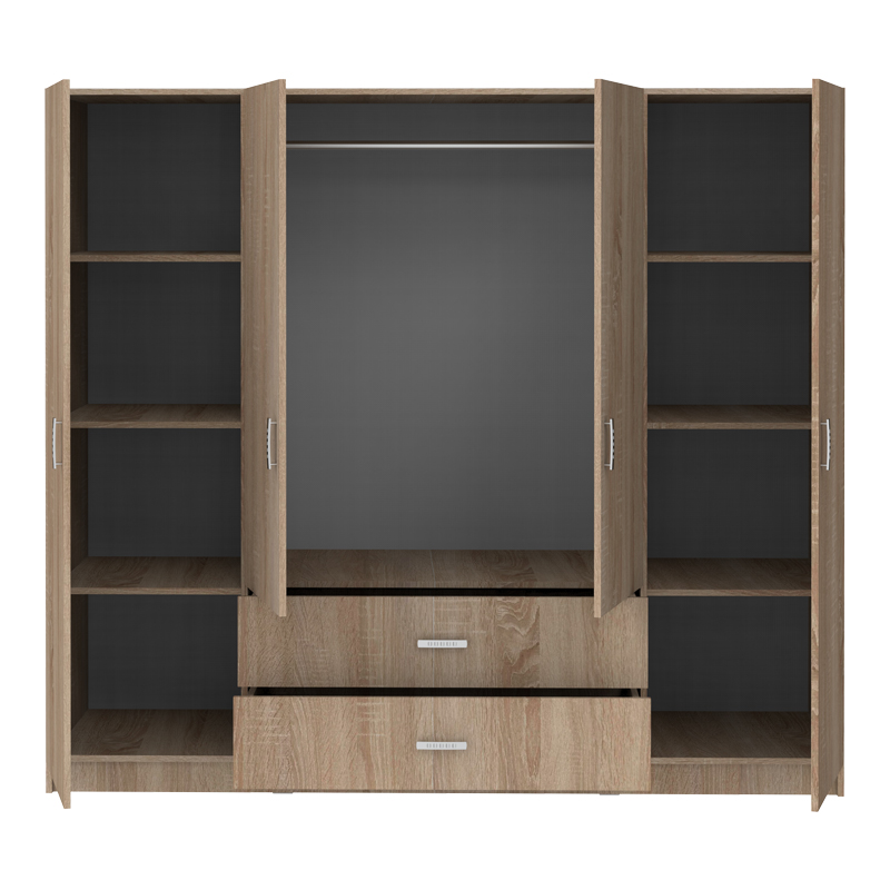 Ντουλάπα τετράφυλλη Royal pakoworld με συρτάρια sonoma 200x58x177εκ