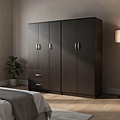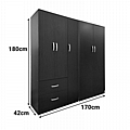 - Περιλαμβάνει πέντε πόρτες, εσωτερικά φέρει ράγα για κρεμάστρες ενώ κάτω φέρει δυο μεγάλα συρτάρια για την αποθήκευση ρούχων και αξεσουάρ.