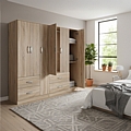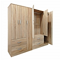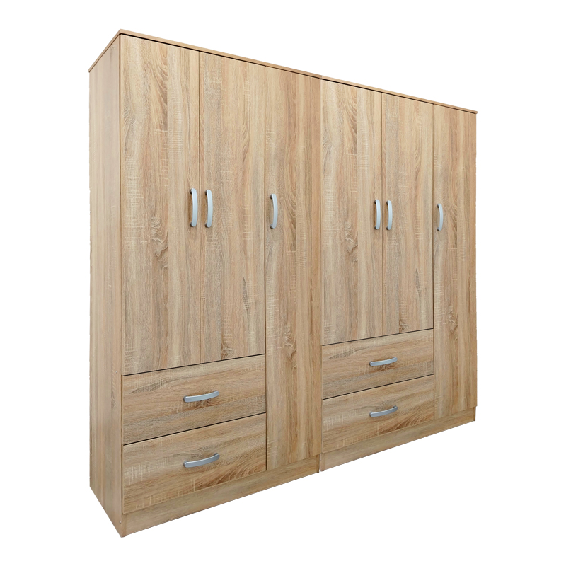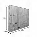 - Περιλαμβάνει έξι πόρτες, εσωτερικά φέρει ράγα για κρεμάστρες και ράφια ενώ κάτω φέρει τέσσερα μεγάλα συρτάρια για την αποθήκευση ρούχων και αξεσουάρ.