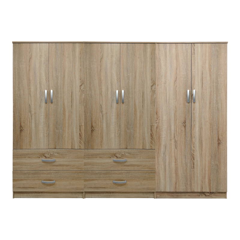 - Περιλαμβάνει εξι πόρτες, εσωτερικά φέρει ράγα για κρεμάστρες ενώ κάτω φέρει τεσσερα μεγάλα συρτάρια για την αποθήκευση ρούχων και αξεσουάρ.