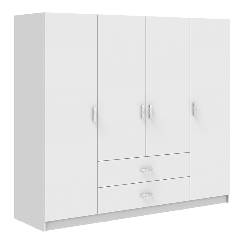 Ντουλάπα τετράφυλλη Royal pakoworld με συρτάρια και πατάρι λευκό 200x58x230εκ