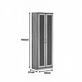 - Φέρει δύο πόρτες από ενισχυμένο ξύλο ΜDF, διάτρητου σχεδιασμού για να αναπνέει ο χώρος, στον ίδιο χρωματισμό.
