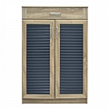 - Φέρει δύο πόρτες από ενισχυμένο ξύλο ΜDF, διάτρητου σχεδιασμού για να αναπνέει ο χώρος, στον ίδιο χρωματισμό.