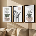 Προσθέστε έναν αέρα φινέτσας, ισορροπίας και σύγχρονου design στον χώρο σας με το εντυπωσιακό τρίπτυχο Elyra. Αυτό το σετ πινάκων βασίζεται σε μια ήρεμη παλέτα και συνδυάζει λιτές γεωμετρικές φόρμες με διακριτικά φυτικά μοτίβα, δημιουργώντας ένα έργο τέχνης που ηρεμεί το βλέμμα.