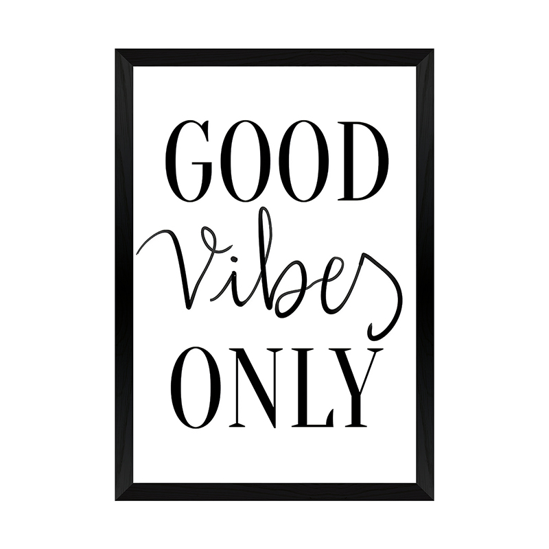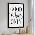 Ο πίνακας Zyra είναι το ιδανικό "feel-good" statement piece για κάθε χώρο. Με το μήνυμα "GOOD VIBES ONLY" τυπωμένο σε μια εντυπωσιακή μίξη μοντέρνων και χειρόγραφων γραμματοσειρών, φέρνει αμέσως μια θετική και ανάλαφρη διάθεση. Το κλασικό ασπρόμαυρο design του τον καθιστά εξαιρετικά ευέλικτο, ταιριάζοντας άψογα σε σκανδιναβική, minimal ή ακόμα και boho διακόσμηση.